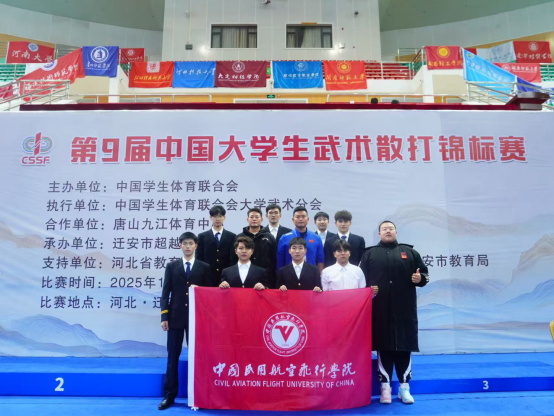 本网讯 航体学院 报道:2025年第九届中国大学生武术散打锦标赛于11月1日至11月8日在河北省唐山市迁安奥体中心开赛。中国民用航空飞行学院武术散打代表队凭借出色表现,获2金2银2铜的优异成绩。