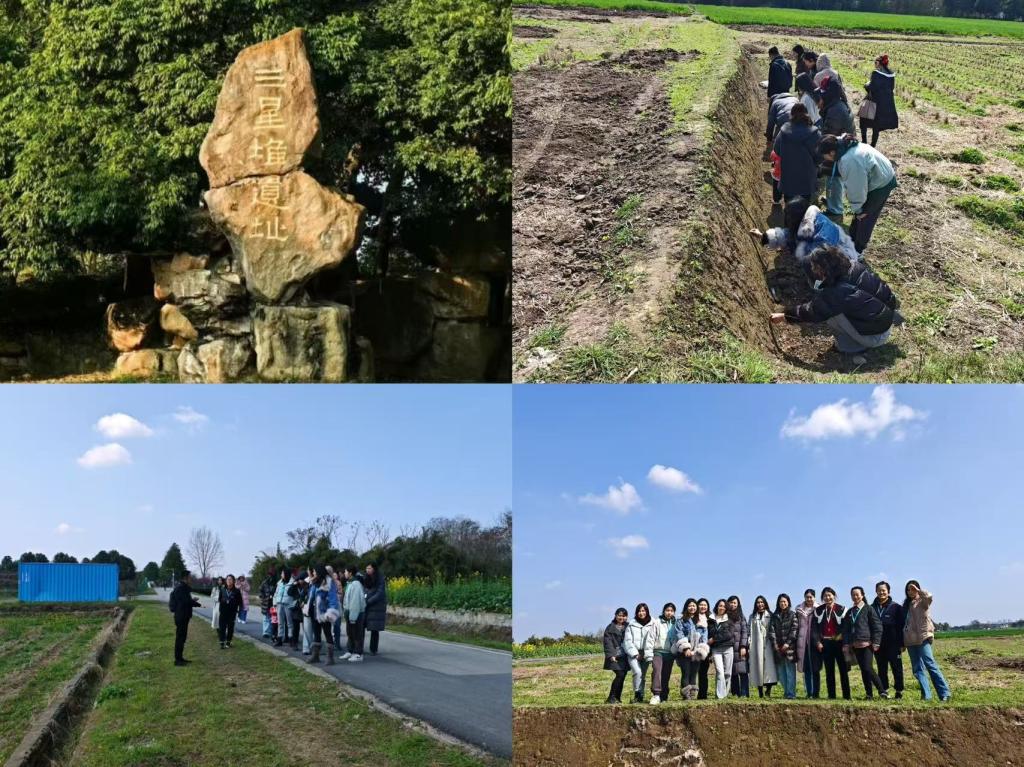 在健步走的过程中,大家欢声笑语,交流着活动的感受与收获,彼此之间的情谊也在这轻松愉快的氛围中更加深厚。在遗址土地上,老师们站成一排,古老的遗迹静静诉说着往昔的故事。镜头定格,大家的笑容里既有对历史的尊重,也有对未来教育事业的憧憬。