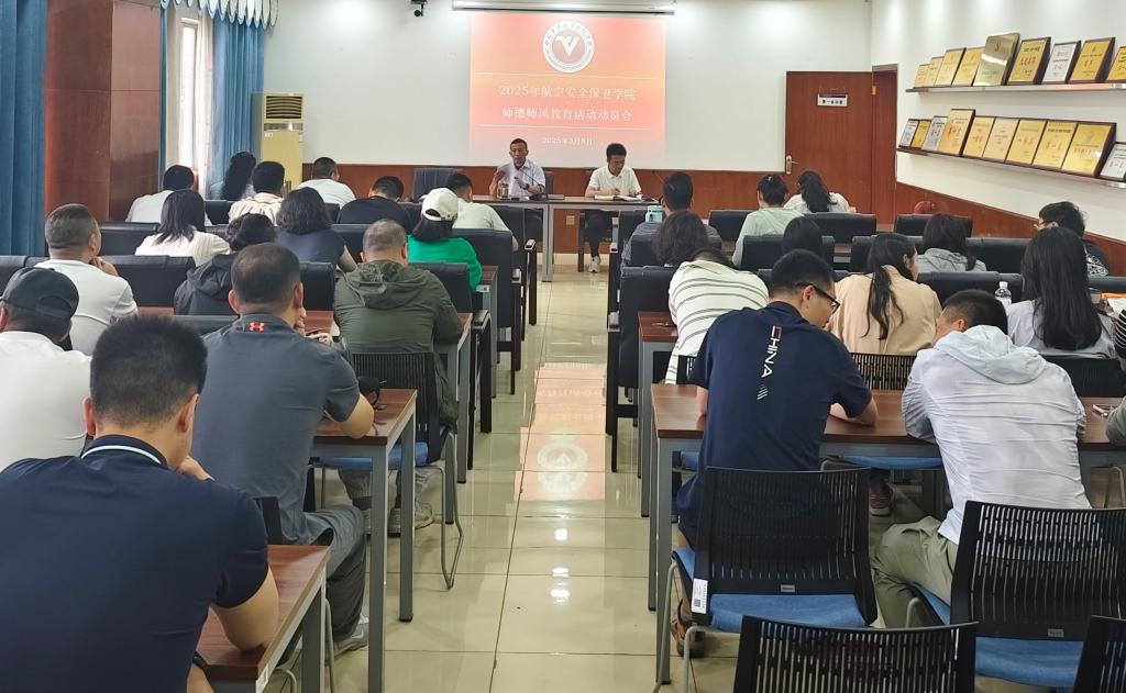 为深入贯彻落实新时代教师队伍建设改革要求,全面构建师德师风建设长效机制,着力打造政治素质过硬、业务能力精湛、育人水平高超的新时代高水平教师队伍,航空安全保卫学院决定于2025年4月至12月开展师德师风教育活动。5月8日上午,师德师风教育活动动员大会在学院东区羽毛球馆二楼会议室召开。安保学院全体教职工参会,会议由学院副院长赵昀主持。