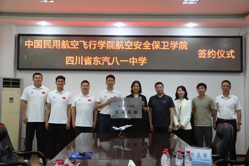 本网讯 安保学院 郑益军摄影报道:5月30日,中国民用航空飞行学院航空安全保卫学院一行前往四川省东汽八一中学共同举行共建实习基地挂牌仪式。四川省东汽八一中学校长赖怡、党委专职副书记付铭飞和相关科室领导,航空安全保卫学院副院长赵昀和相关科室老师共同参与了此次活动。