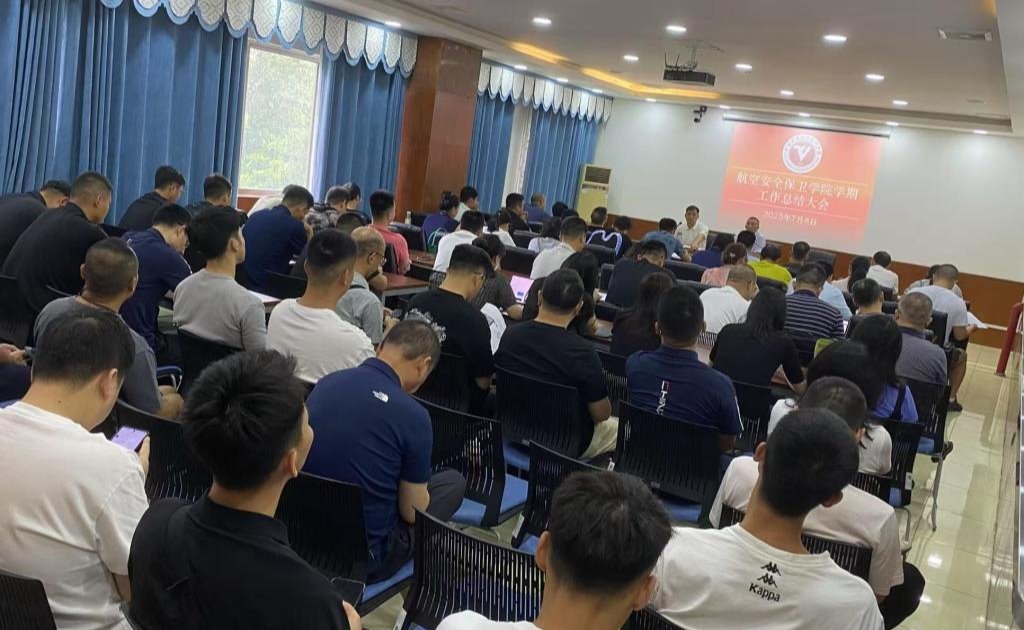 本网讯 安保学院报道:2025年7月8日上午9点,航空安全保卫学院在东区羽毛球馆二楼会议室召开本学期工作总结大会,全体教职工参会,学院党委书记王旭主持会议。